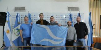 Uriarte tiene su Bandera de la Ciudad y empezó la recorrida...