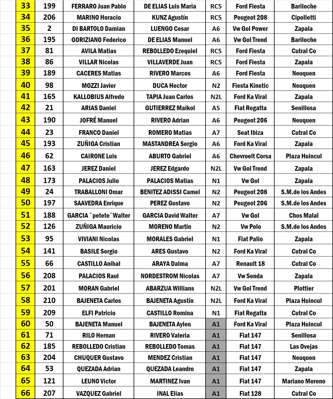 De esta manera, tendremos 13 autos en la A6; 12 en la N2; 8 en la N2L, en la RC5 y en la N1; 7 en la A7 y en la A1 y 3 en la A5.
