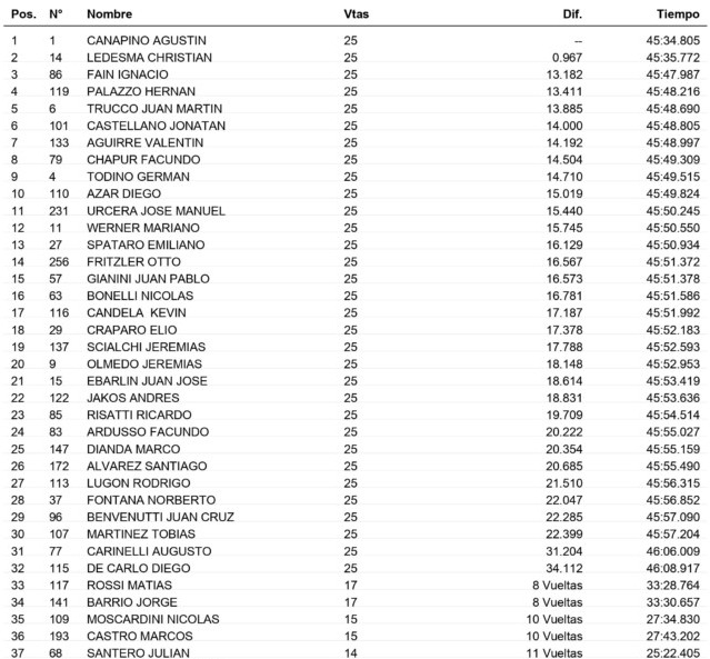 Quien aprovechó esa circunstancia fue Ignacio Faín, que dio cuenta de los tres involucrados y quedó segundo detrás de Rossi. El que también aprovechó a avanzar fue Castellano.
