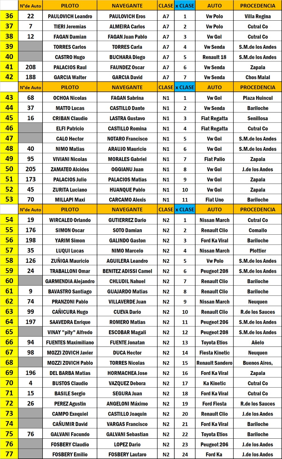 Luego de no tener autos en la línea de llegada en la carrera de Bajada del Agrio, la A5 tiene 11 inscriptos. Además de los grandes protagonistas, Nicolás González, Pablo Correa y Marcos Rosas, en Junín estarán Norberto Paparella, Daniel Arriegada, Brian Robla, Ernesto Merusi, Rodrigo Molina, Brian Torres, Daniel Arias y Miguel González.