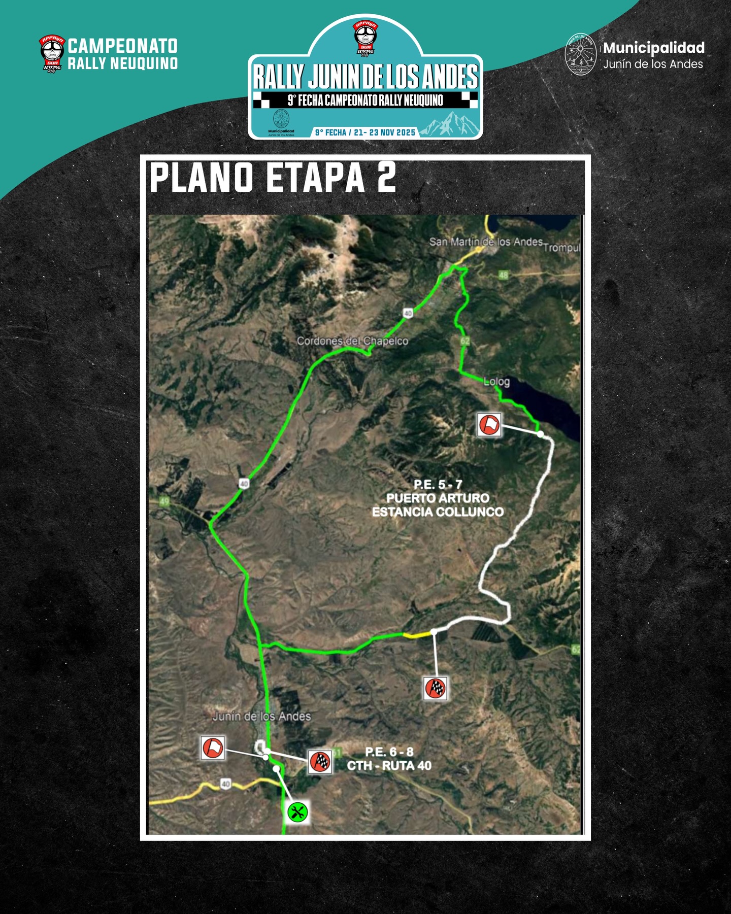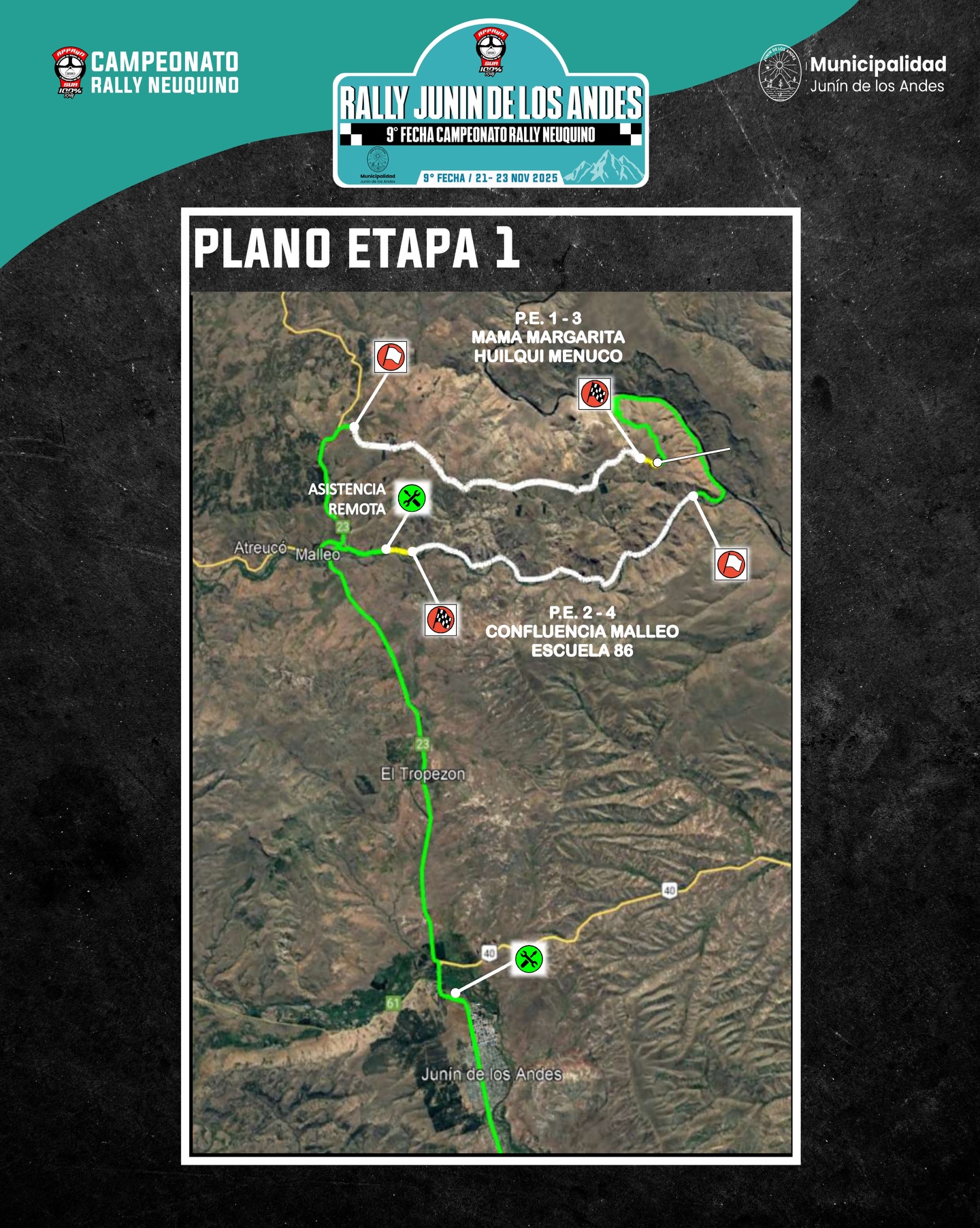 Cuatro serán los tramos a recorrer durante el fin de semana. El sábado se correrá al norte de Junín, entre “Mamá Margarita – Huilqui Menuco” y entre “Confluencia Malleo – Escuela 86”. El domingo, las especiales recorrerán los tramos “Puerto Arturo – Estancia Collunco” y habrá un tramo denominado “CTH – Ruta 40”, que estará bien a mano de los habitantes de la localidad.